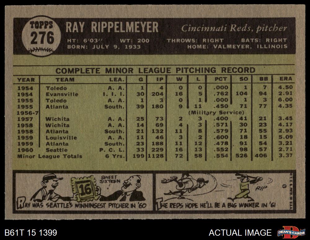 1961 Topps #276 Ray Rippelmeyer 4 - VG/EX
