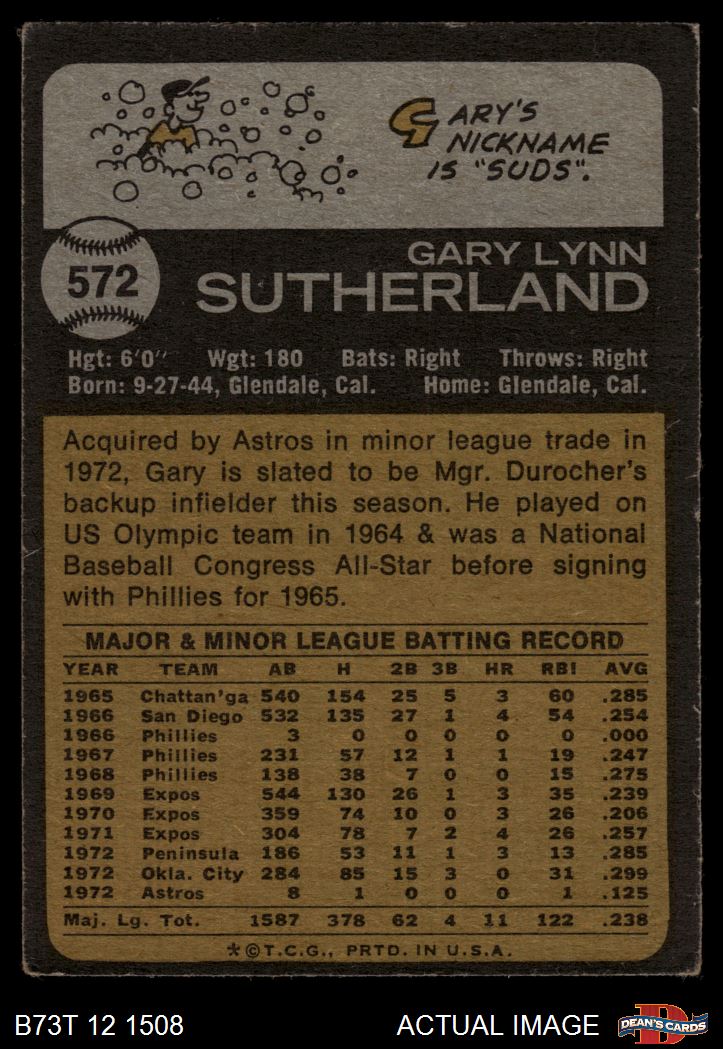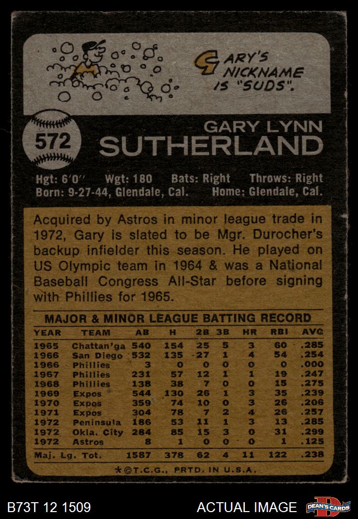 1973 Topps #572 Gary Sutherland 1.5 - FAIR