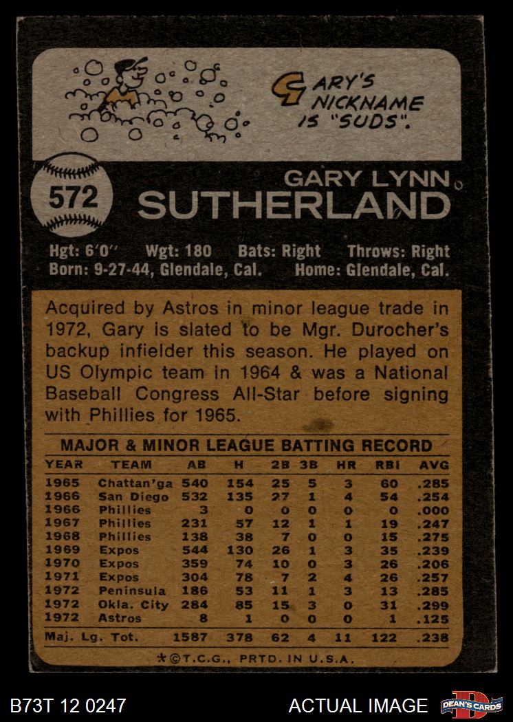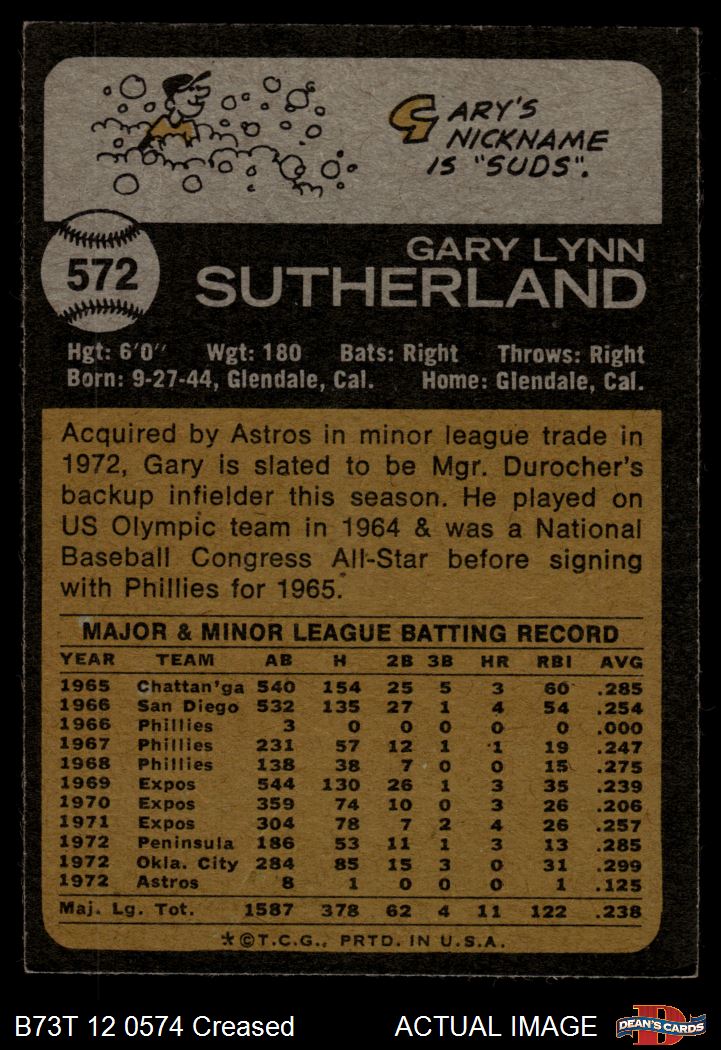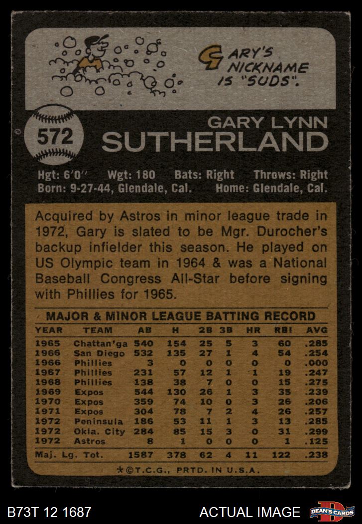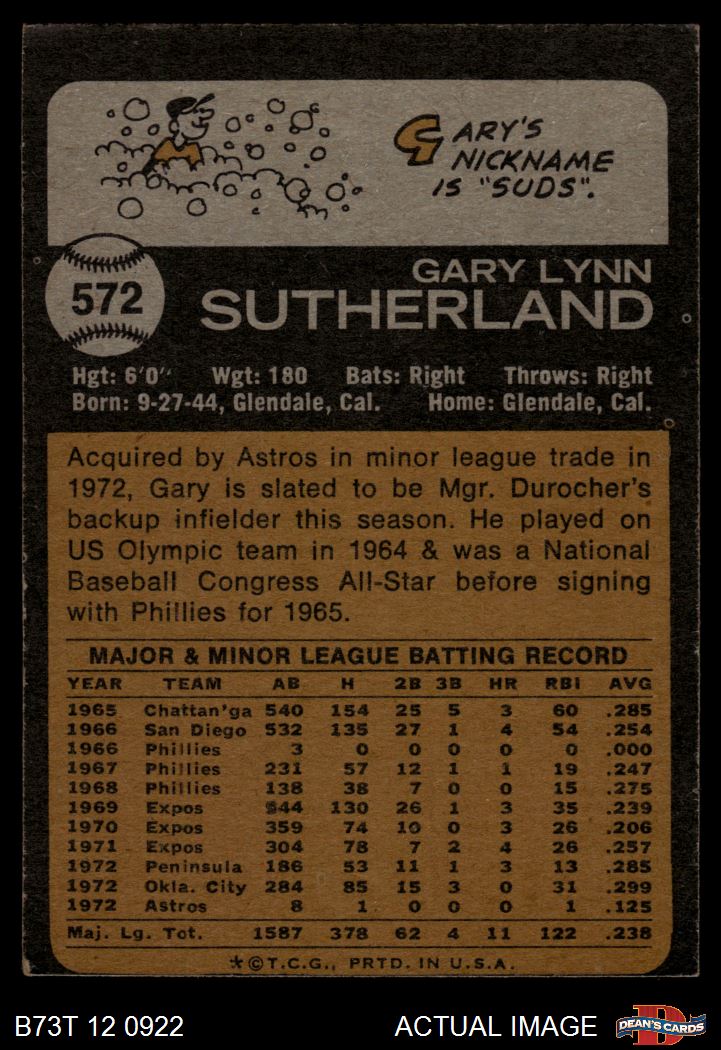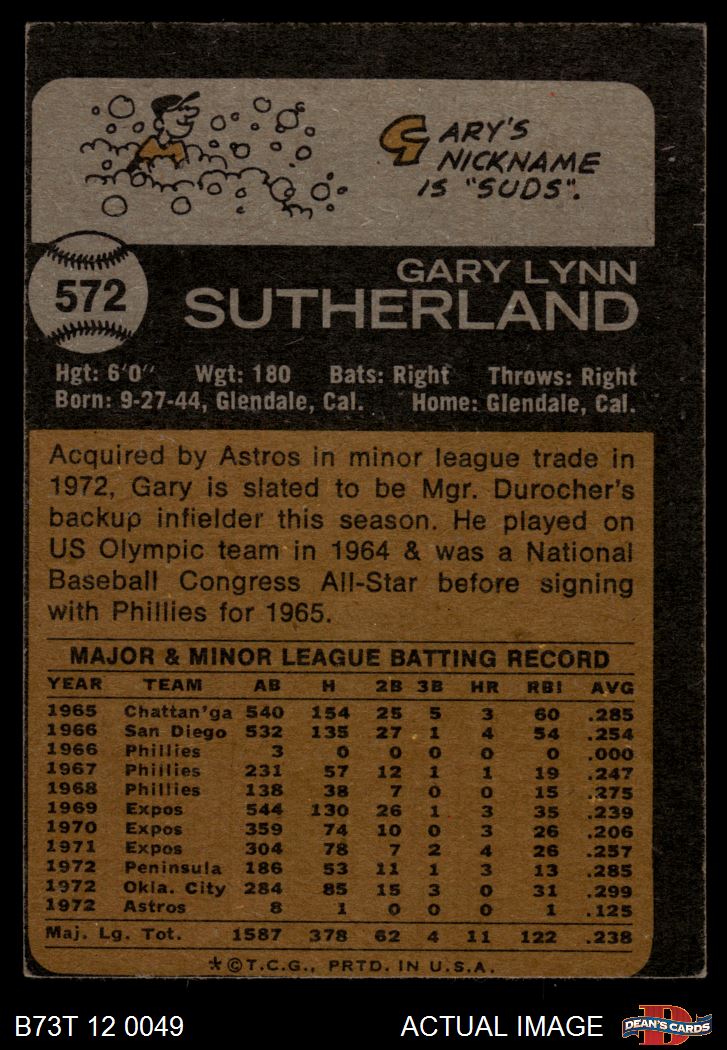 1973 Topps #572 Gary Sutherland 3 - VG