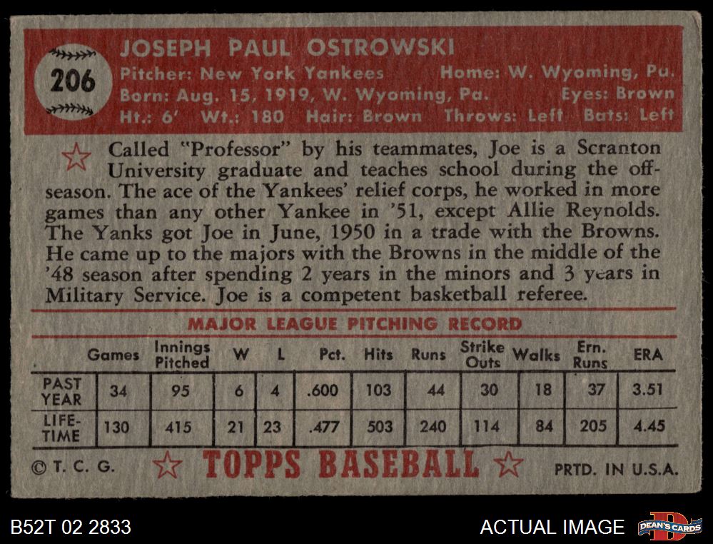 1952 Topps #206 Joe Ostrowski