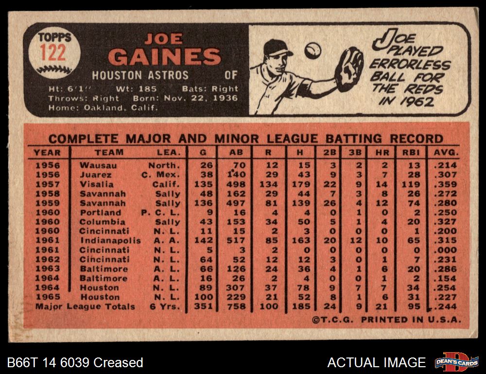 1966 Topps #122 Joe Gaines 2 - GOOD