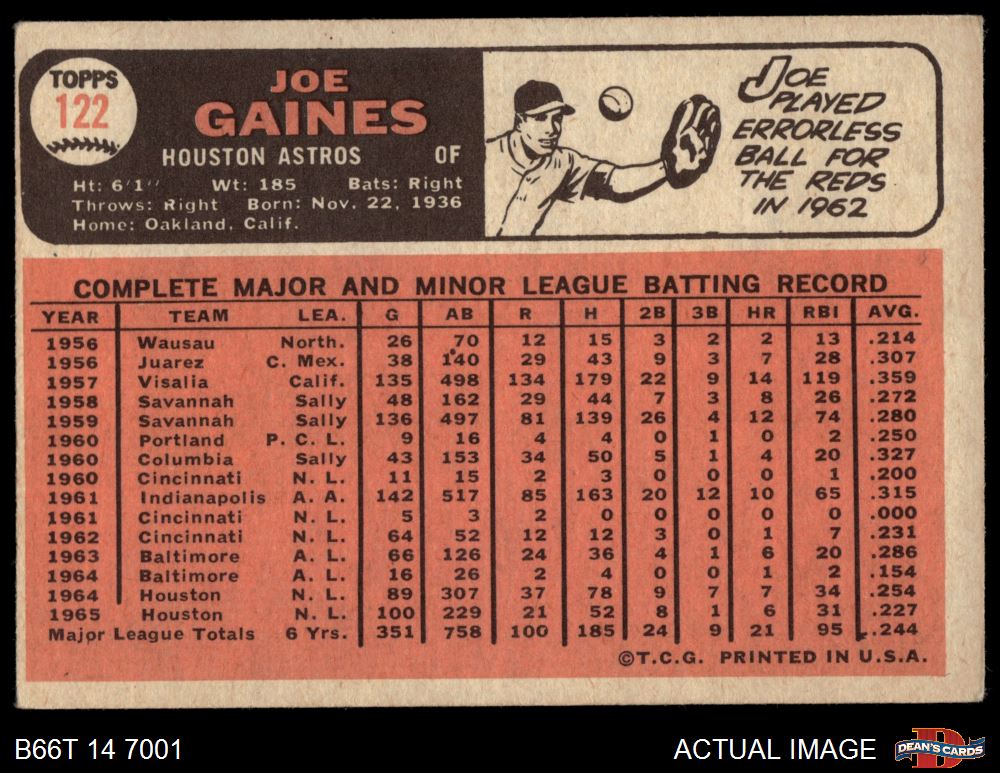 1966 Topps #122 Joe Gaines 3 - VG