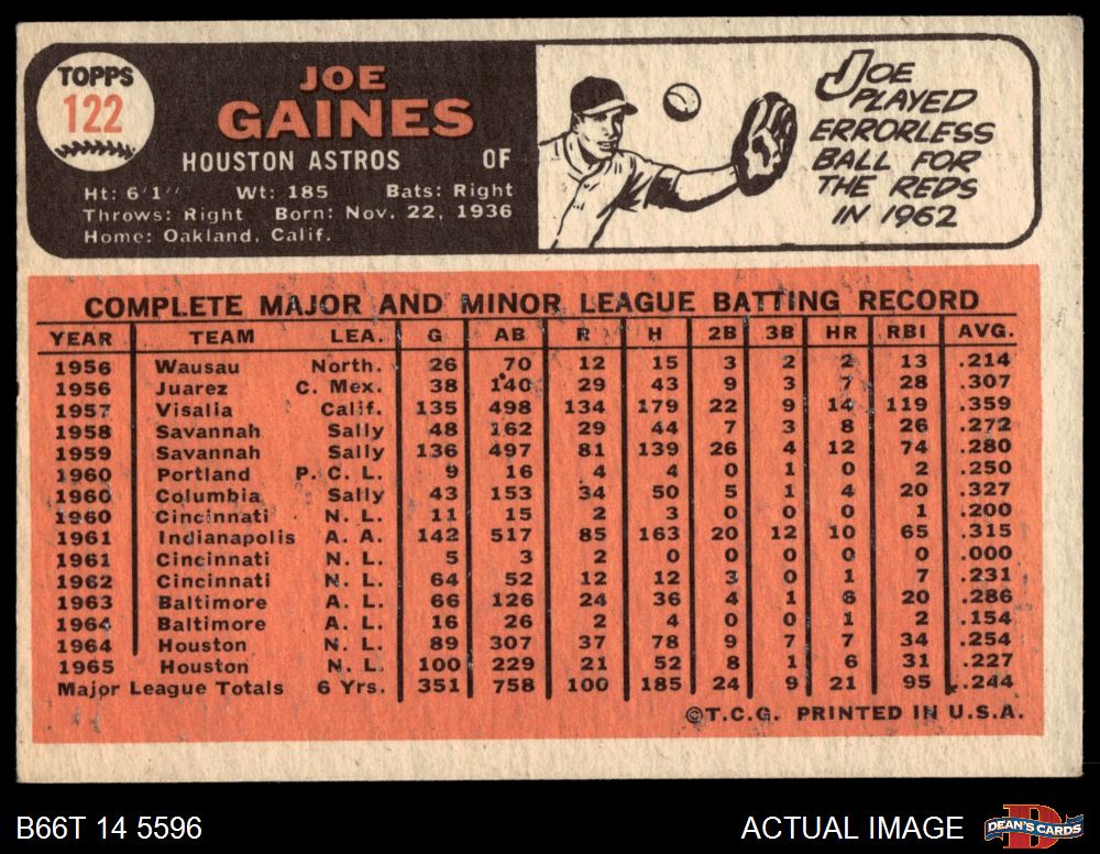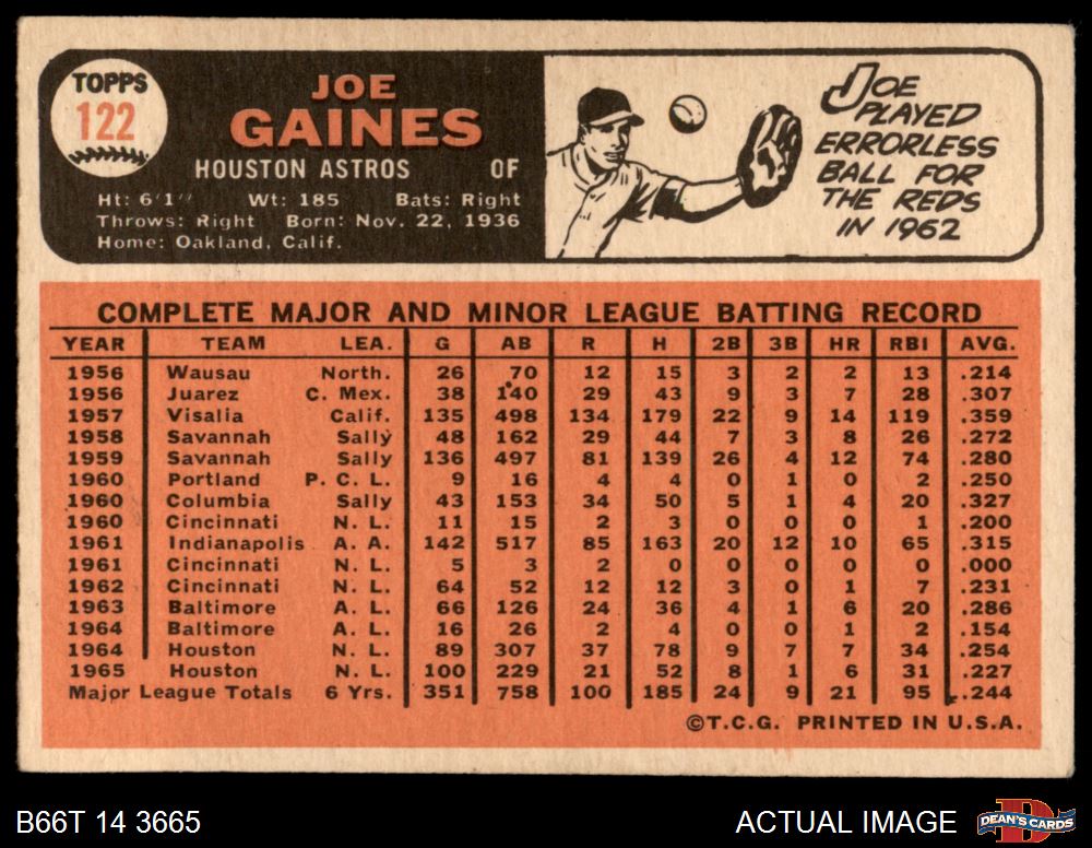 1966 Topps #122 Joe Gaines 4 - VG/EX