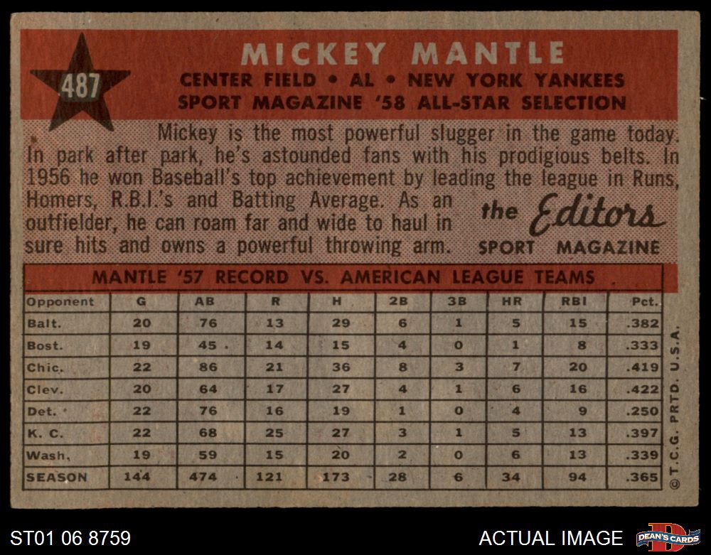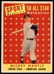 1958 Topps #487 - Mickey Mantle All-Star 4 - VG/EX