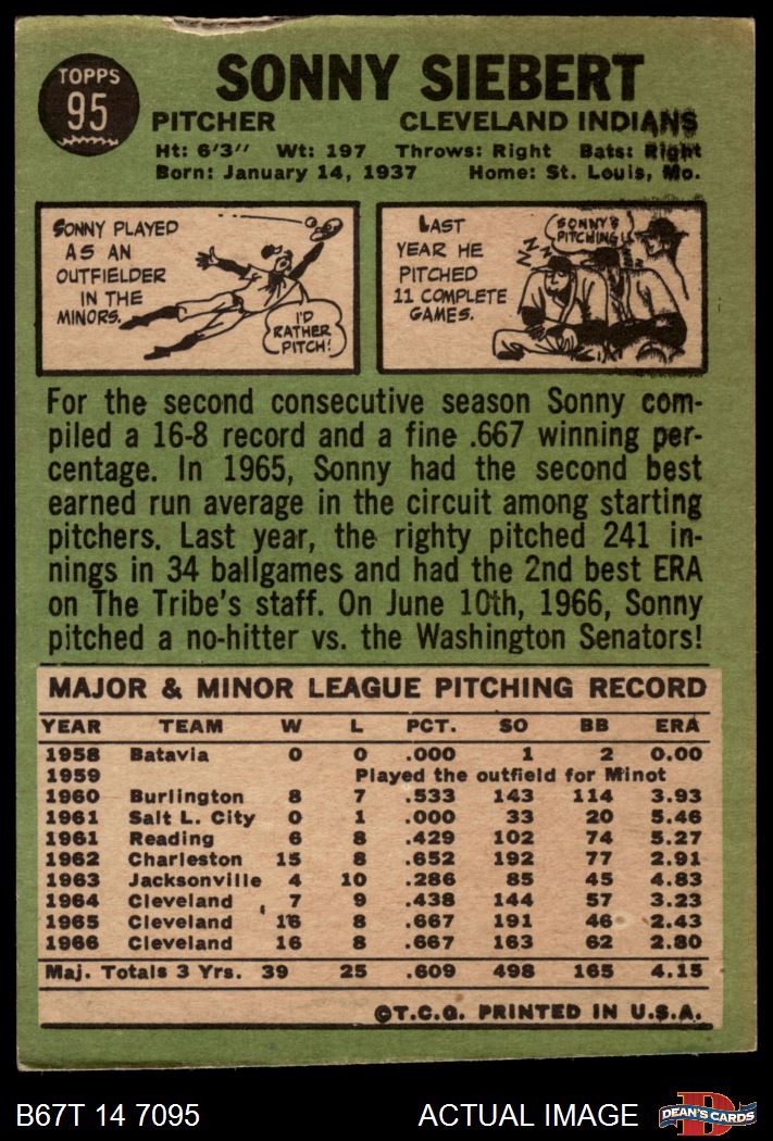 1967 Topps #95 GL Sonny Siebert 4 - VG/EX