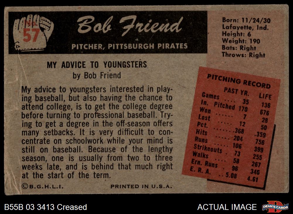 1955 Bowman #57 Bob Friend 2 - GOOD