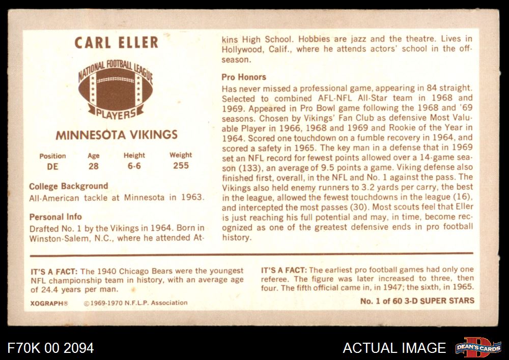 1970 Kellogg's #1 Carl Eller 4 - VG/EX