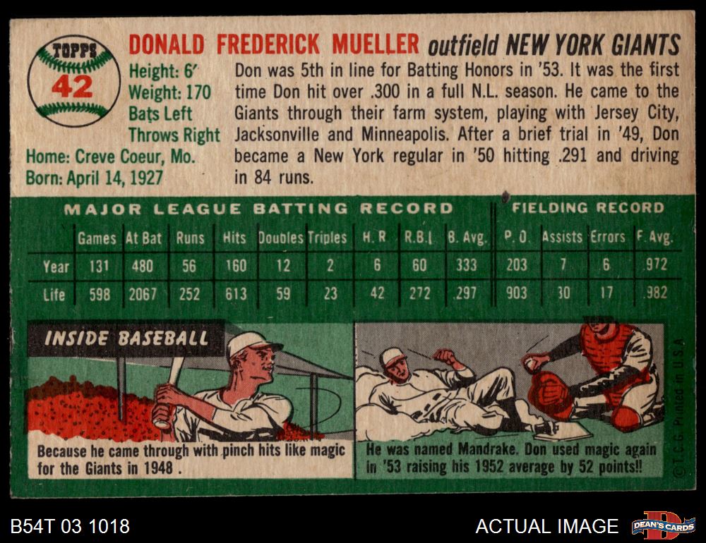 1954 Topps #42 WHT Don Mueller 5 - EX