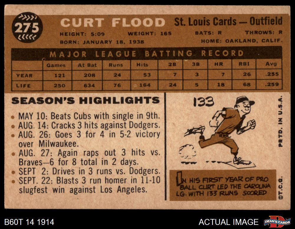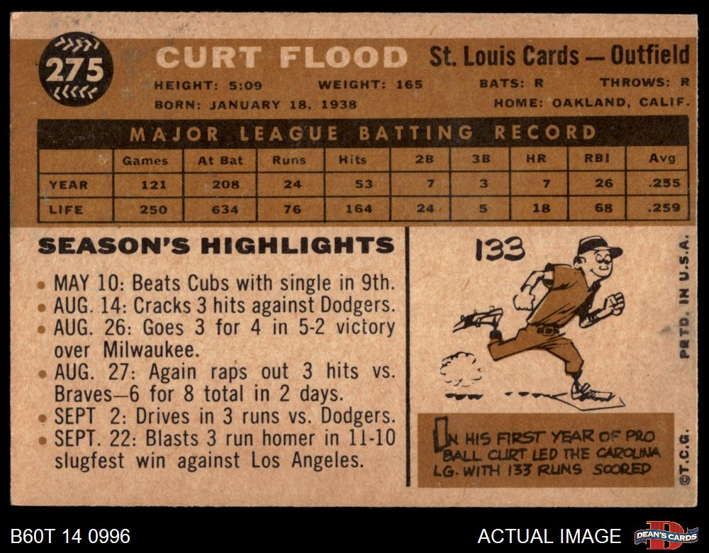 1960 Topps #275 Curt Flood 3 - VG