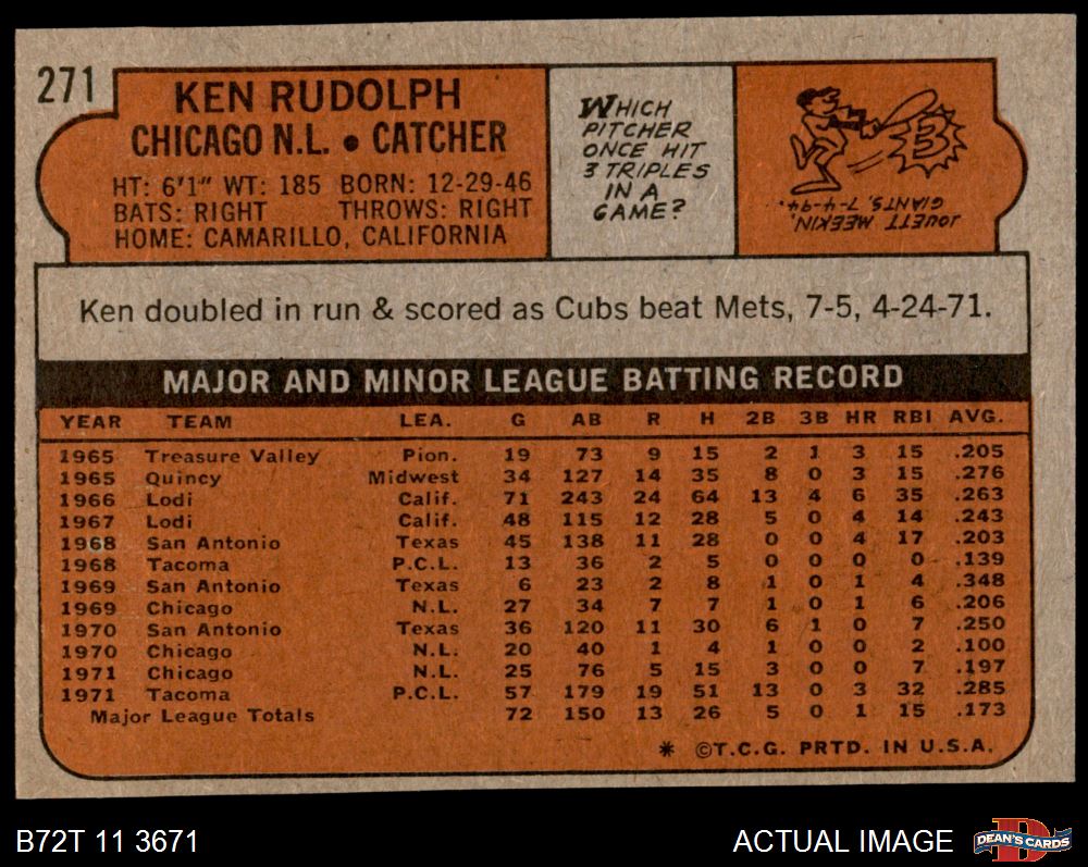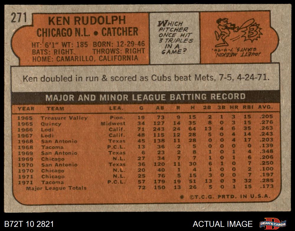 1972 Topps #271 Ken Rudolph 6 - EX/MT