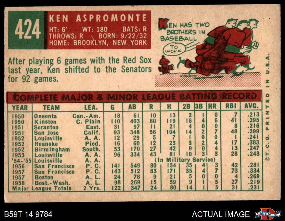 1959 Topps #424 Ken Aspromonte