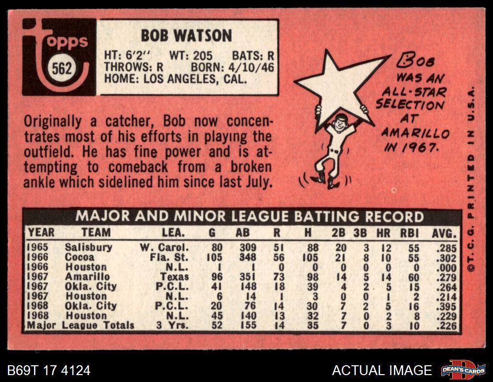 1969 Topps #562 Bob Watson 5.5 - EX+