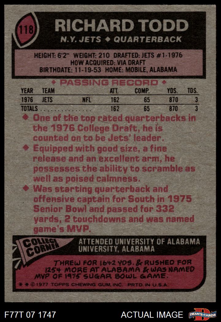 1977 Topps Football Cards (11,079 available)1977 Topps Jets (420 available)