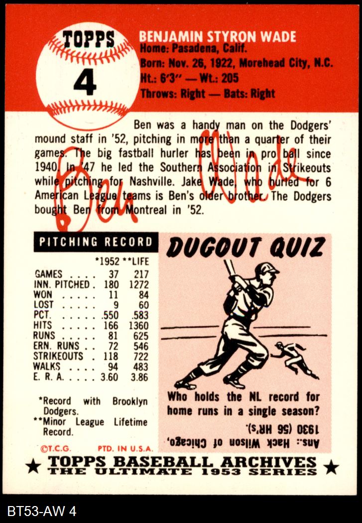 1953 Topps Archives #4 Ben Wade 8 - NM/MT