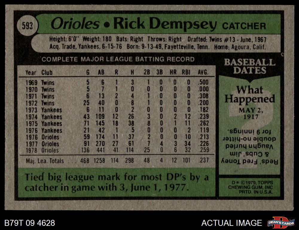 1979 Topps #593 Rick Dempsey 4.5 - VG/EX+