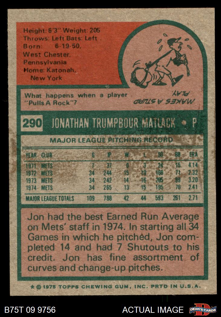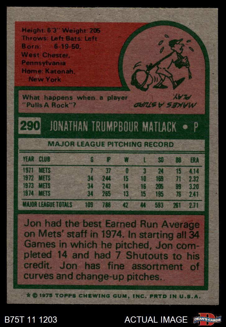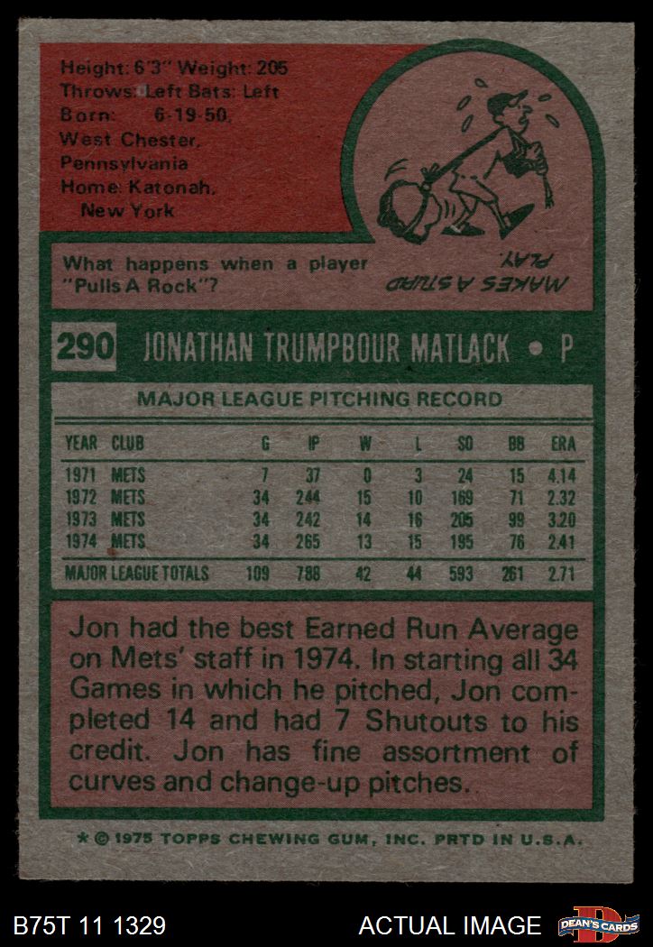 1975 Topps #290 Jon Matlack