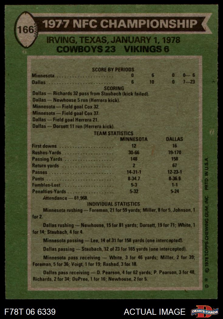 1978 Topps #166 - Roger Staubach NFC Championship 6.5 - EX/MT+