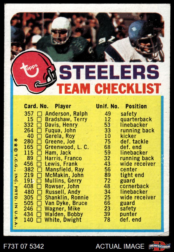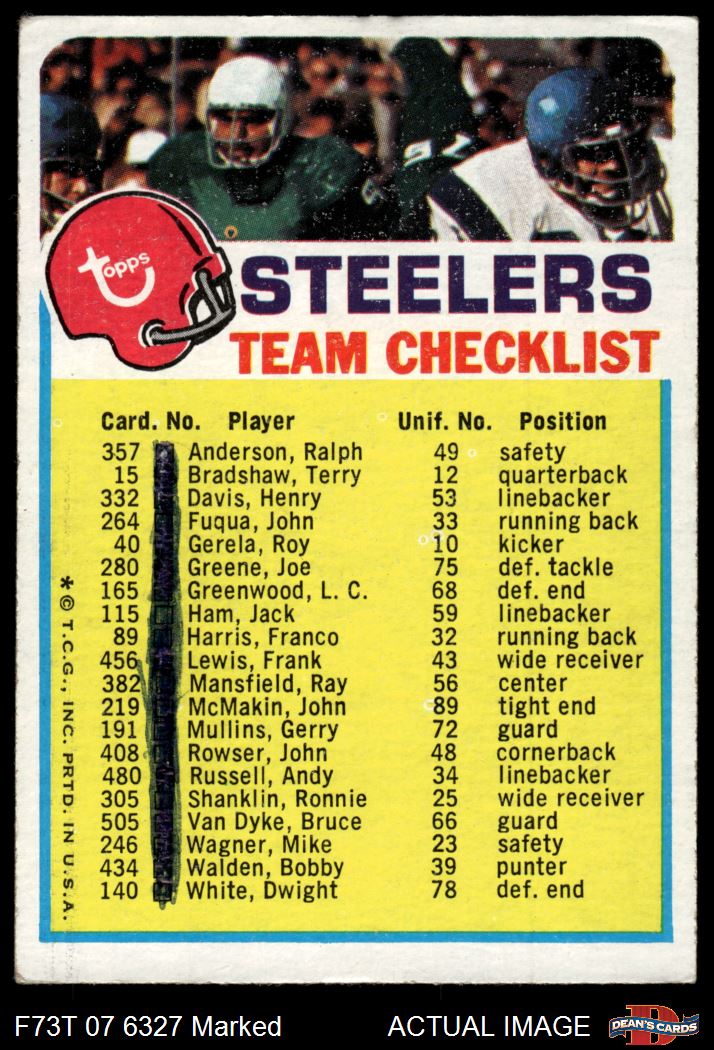 1973 Topps Football Cards (11,997 available)1973 Topps Checklist Steelers (14 available)