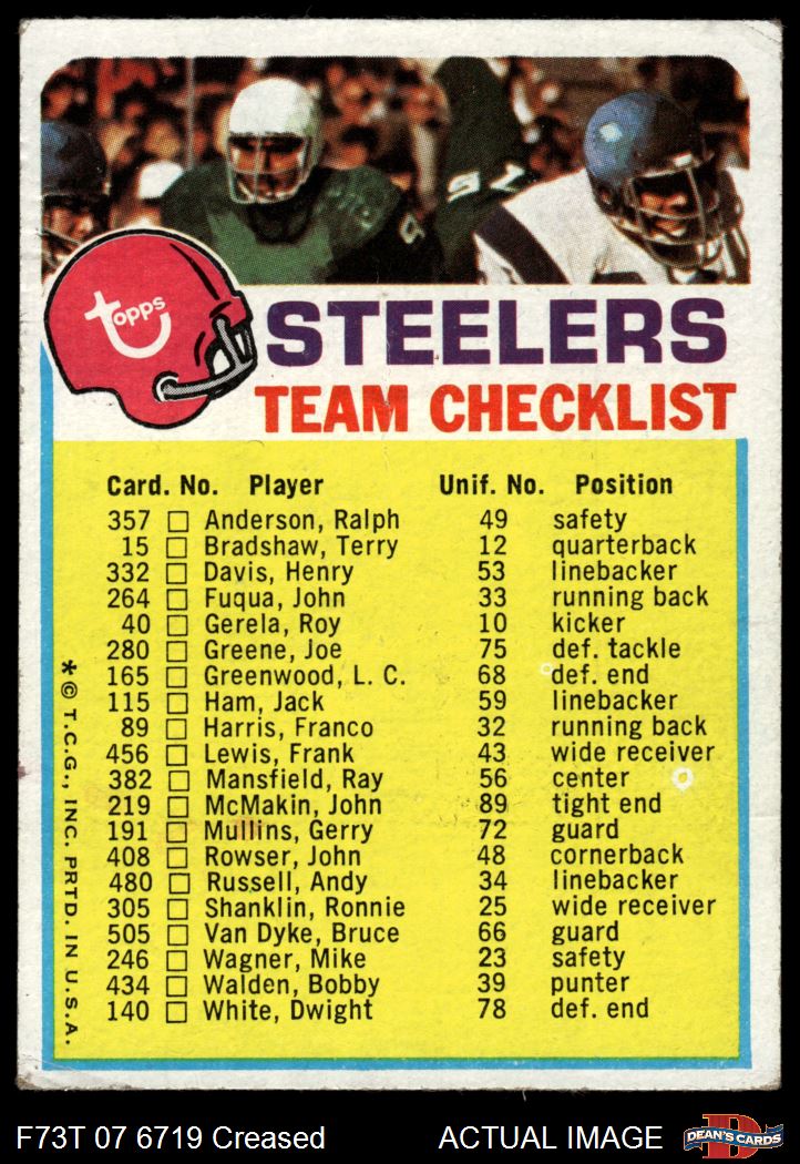 1973 Topps Checklist Steelers 2 - GOOD