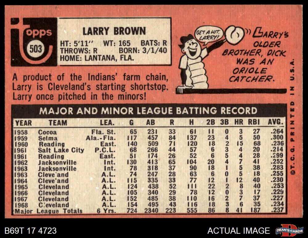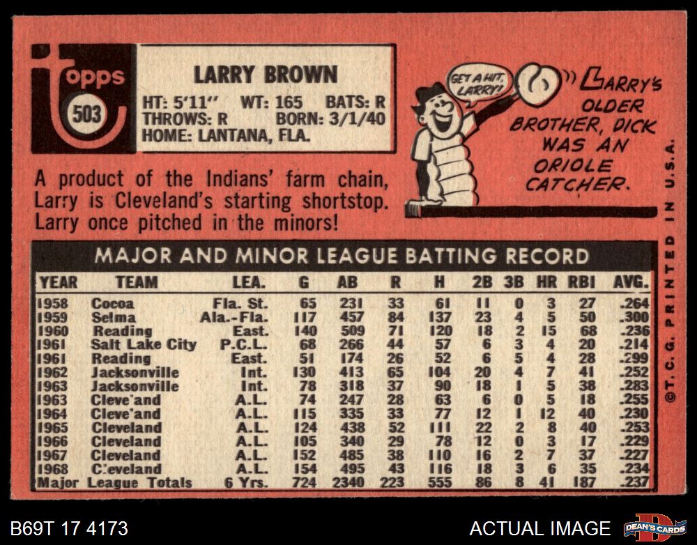 1969 Topps #503 Larry Brown 4 - VG/EX