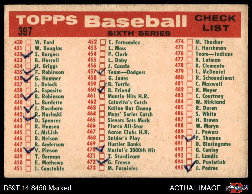 1959 Topps #397 Senators Team Checklist 1.5 - FAIR