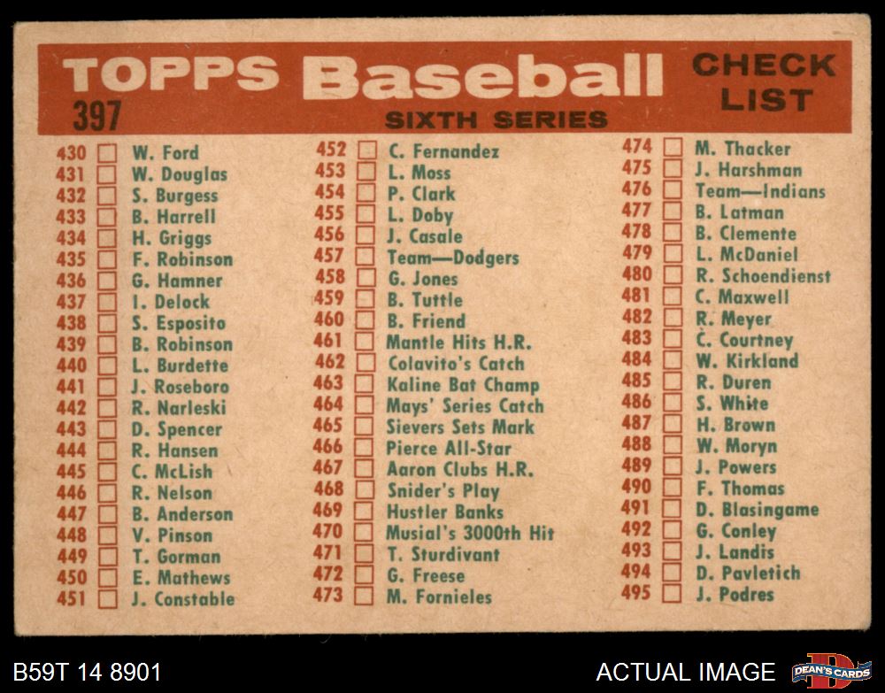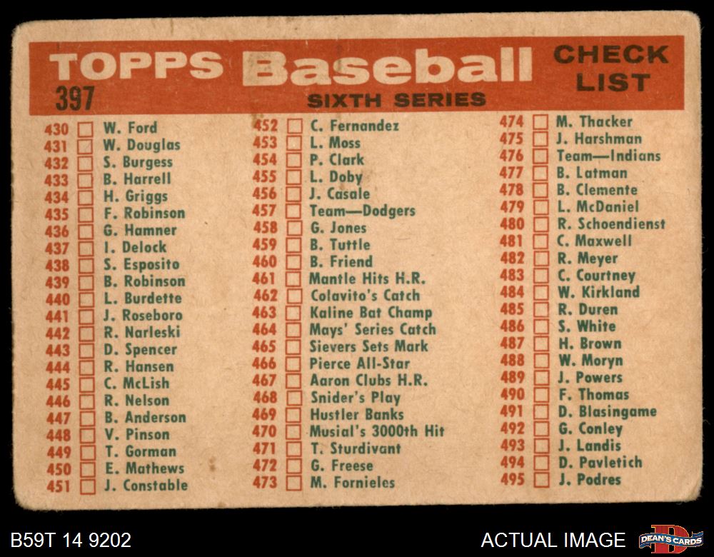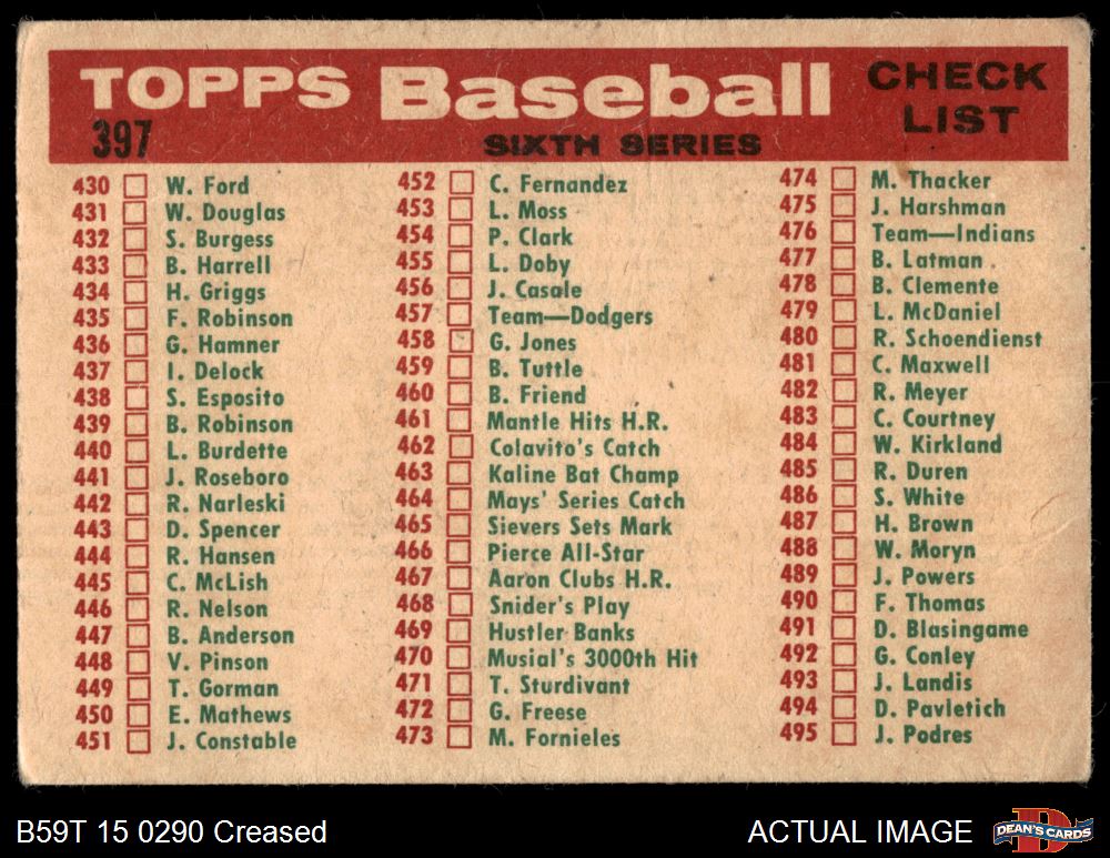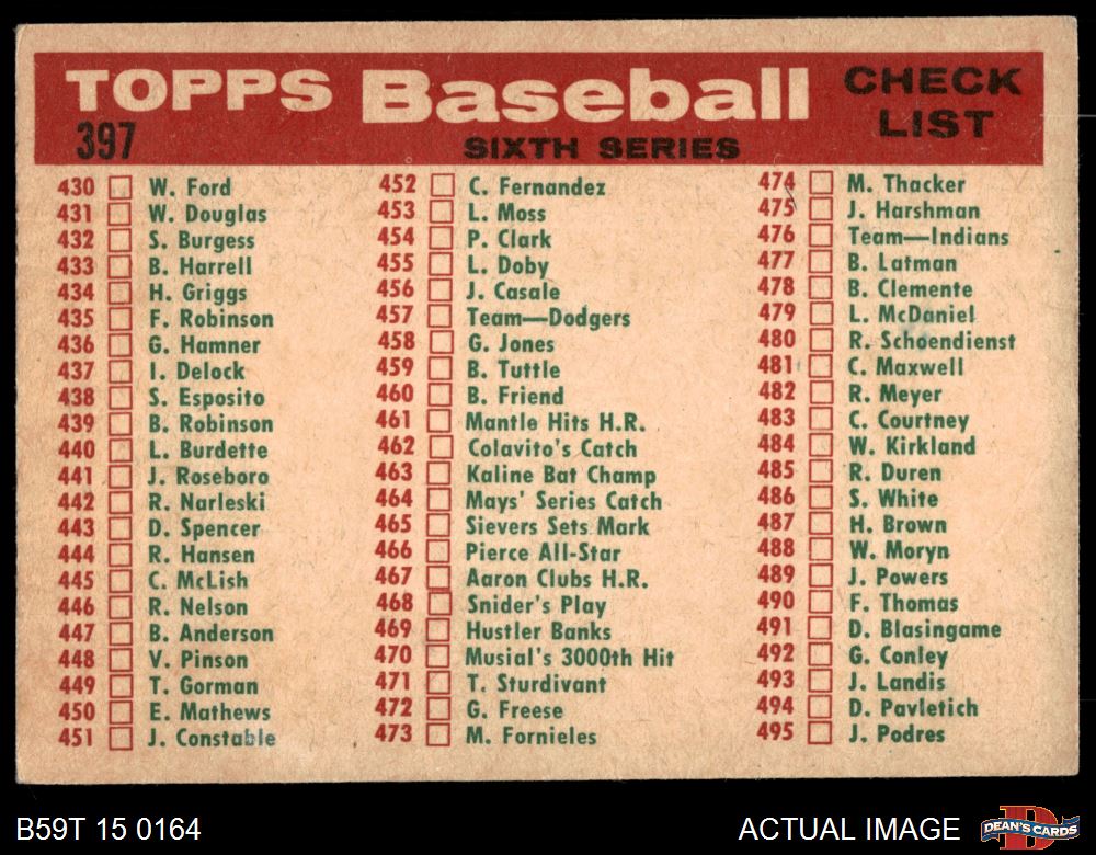 1959 Topps #397 Senators Team Checklist