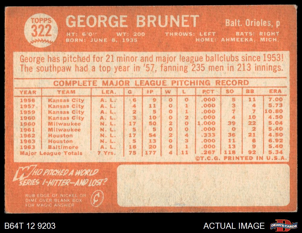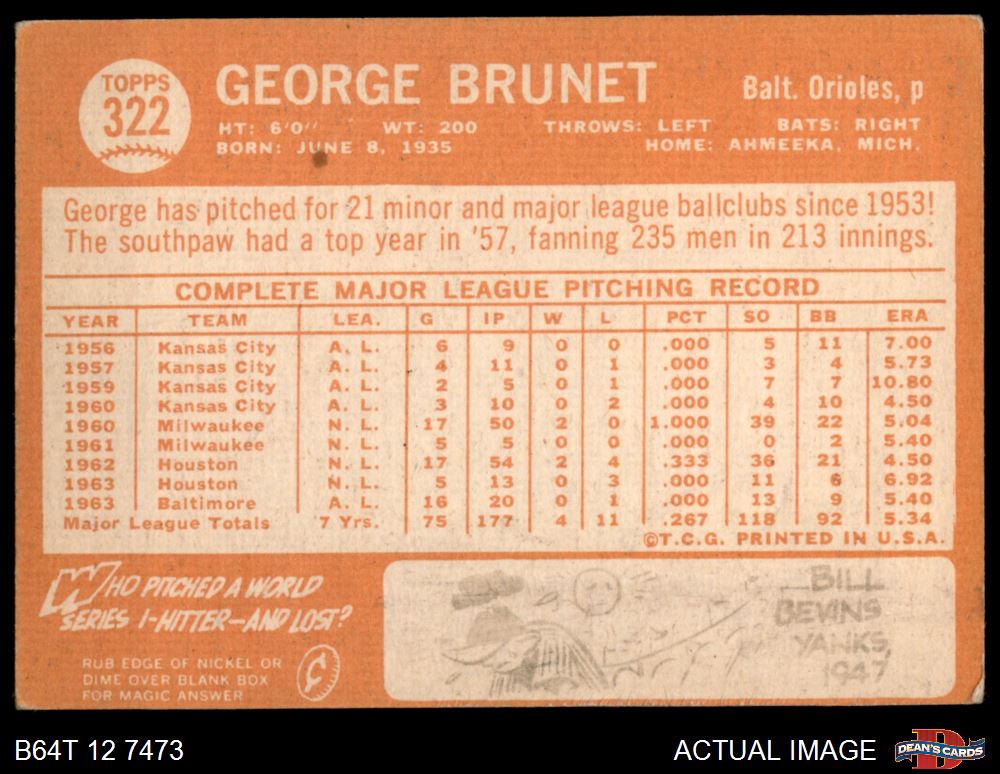 1964 Topps #322 George Brunet 2 - GOOD