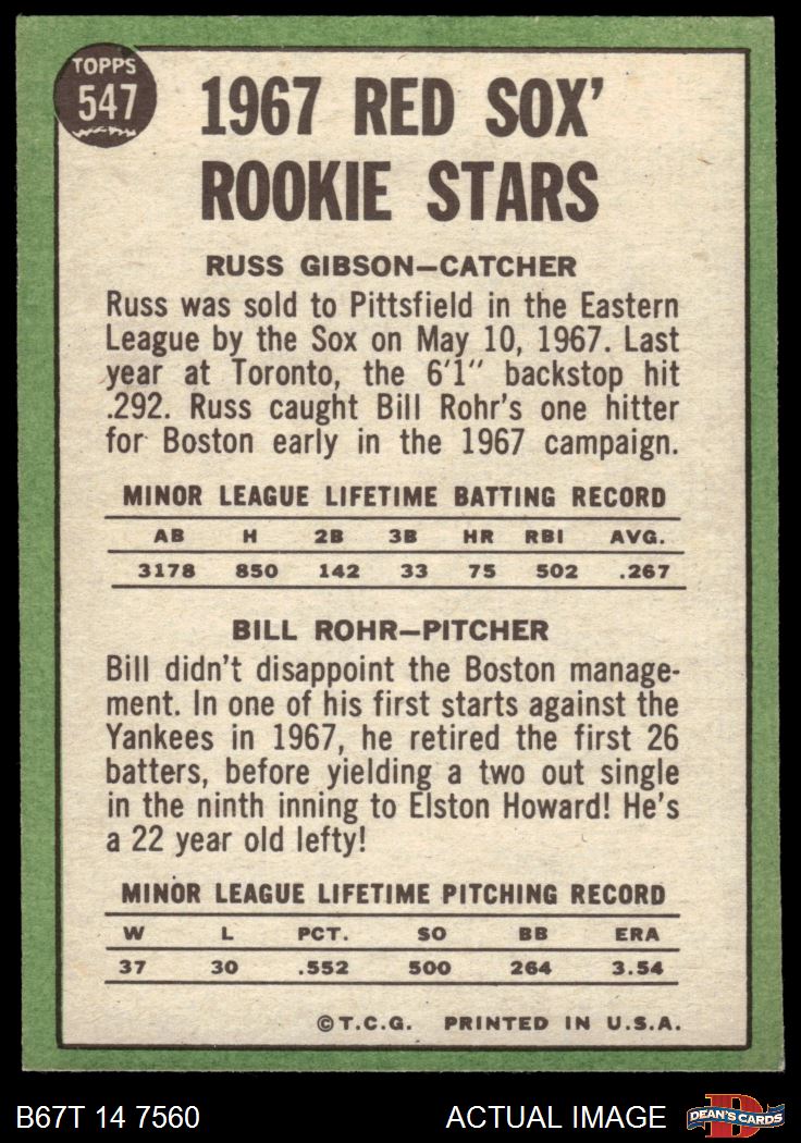 1967 Topps #547 - Russ Gibson / Bill Rohr Red Sox Rookies 6 - EX/MT