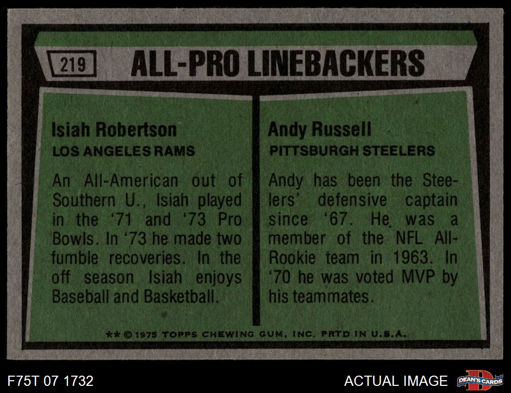 1975 Topps #219 - Isiah Roberston / Andy Russell All-Pro Linebackers 5 - EX