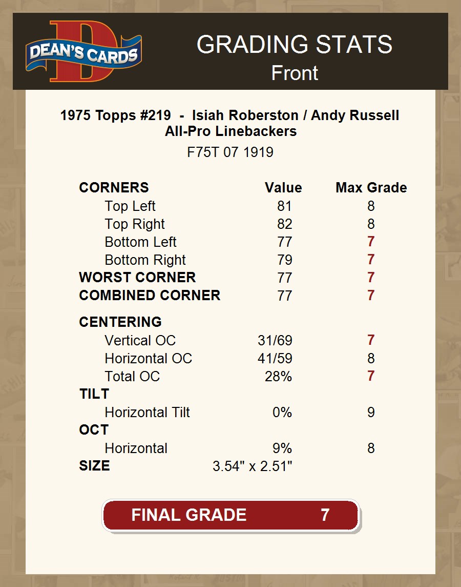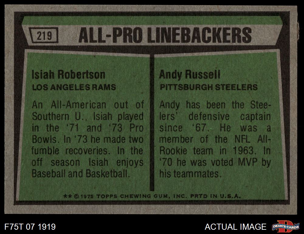 1975 Topps #219 - Isiah Roberston / Andy Russell All-Pro Linebackers 7 - NM