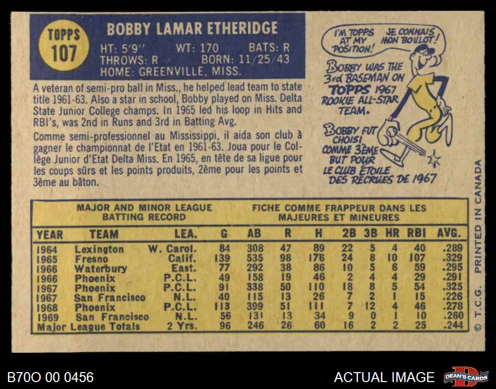1970 O-Pee-Chee #107 Bobby Etheridge