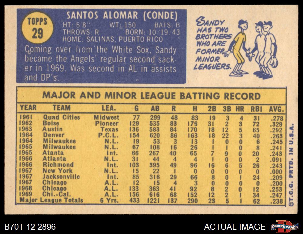 1970 Topps #29 Sandy Alomar 6 - EX/MT