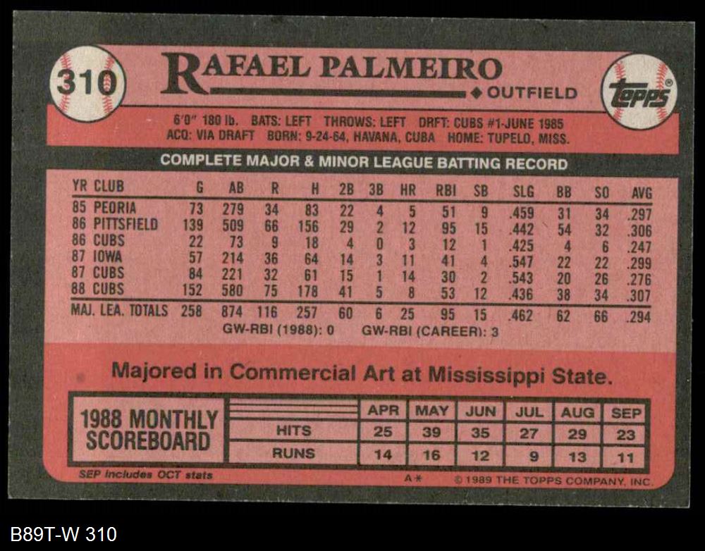 1989 Topps #310 Rafael Palmeiro 8 - NM/MT