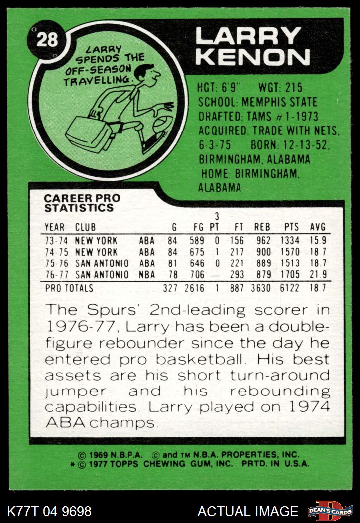 1977 Topps #28 Larry Kenon 5 - EX
