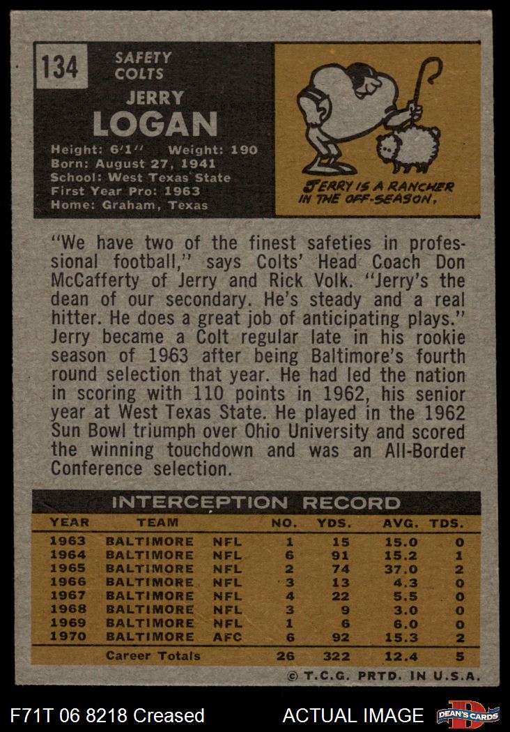 1971 Topps #134 Jerry Logan 3 - VG