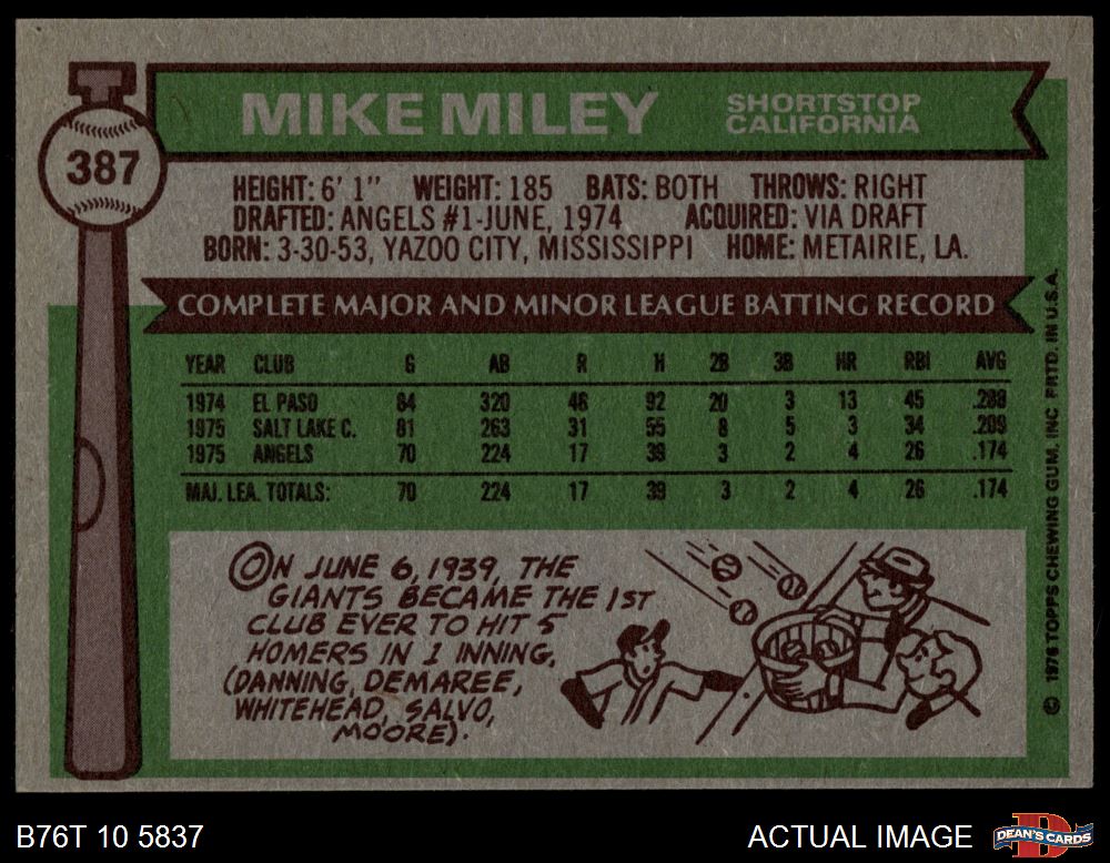 1976 Topps #387 Mike Miley 6 - EX/MT