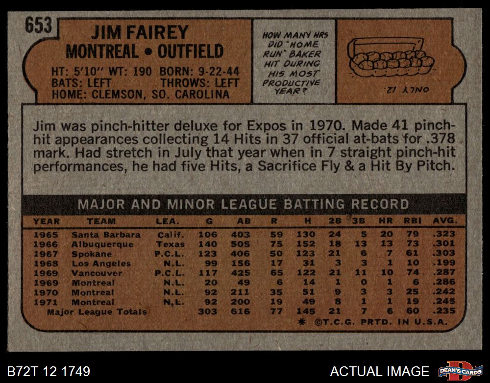 1972 Topps #653 Jim Fairey