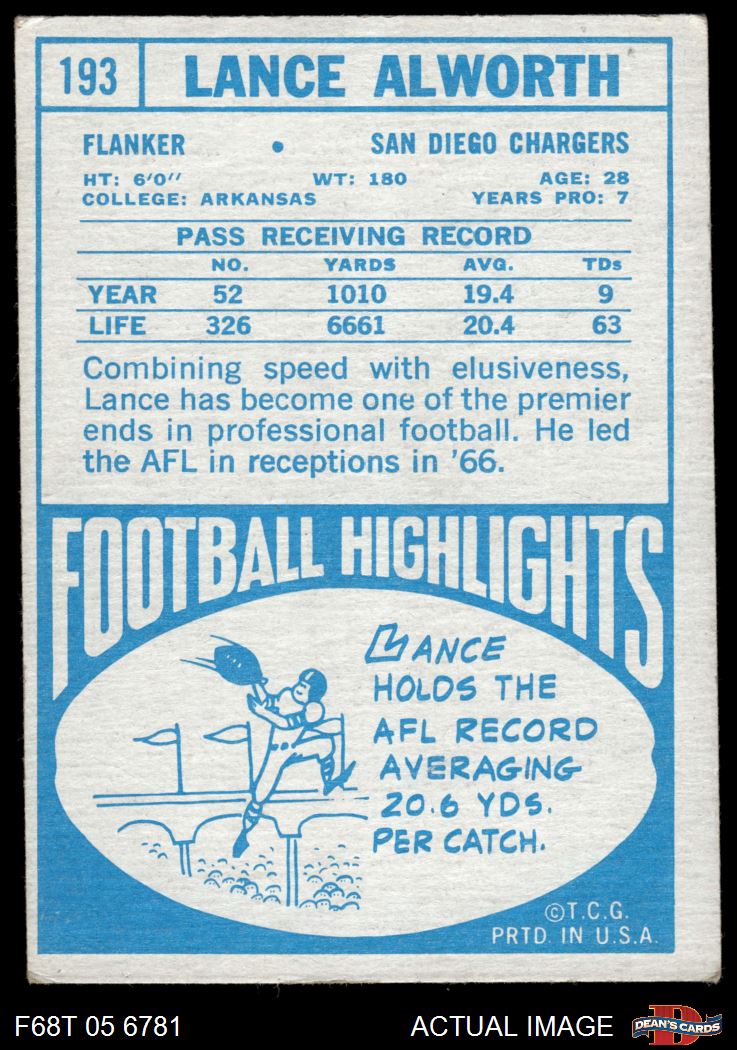 1968 Topps #193 Lance Alworth