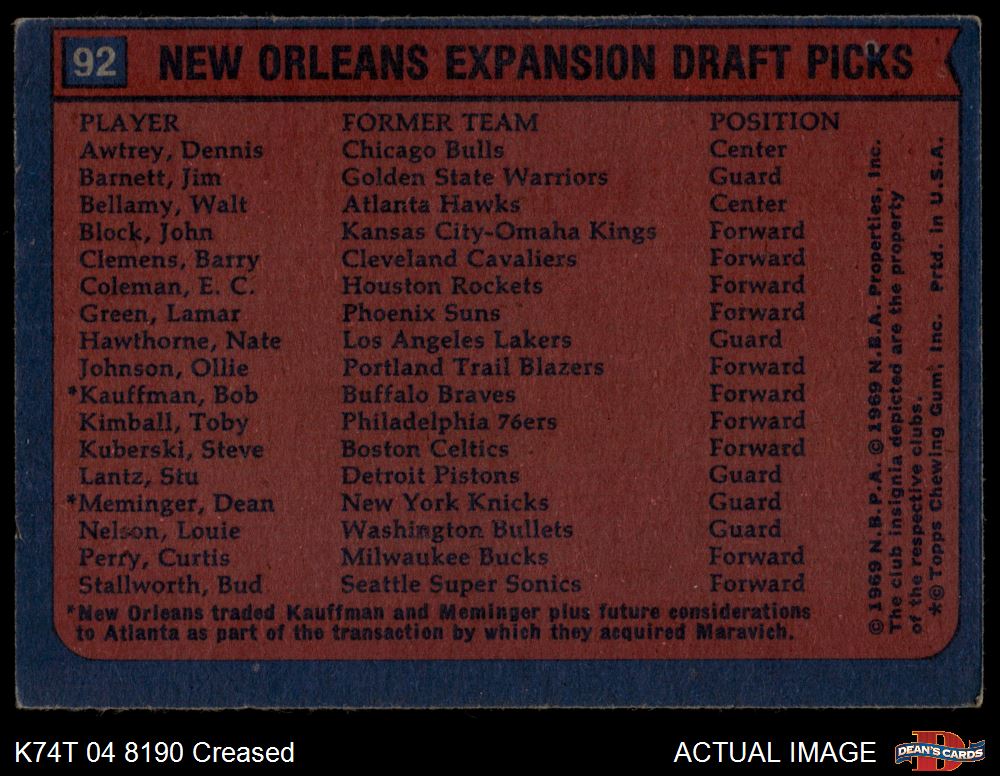 1974 Topps #92  New Orleans Jazz Expansion Draft Picks Front Thumbnail