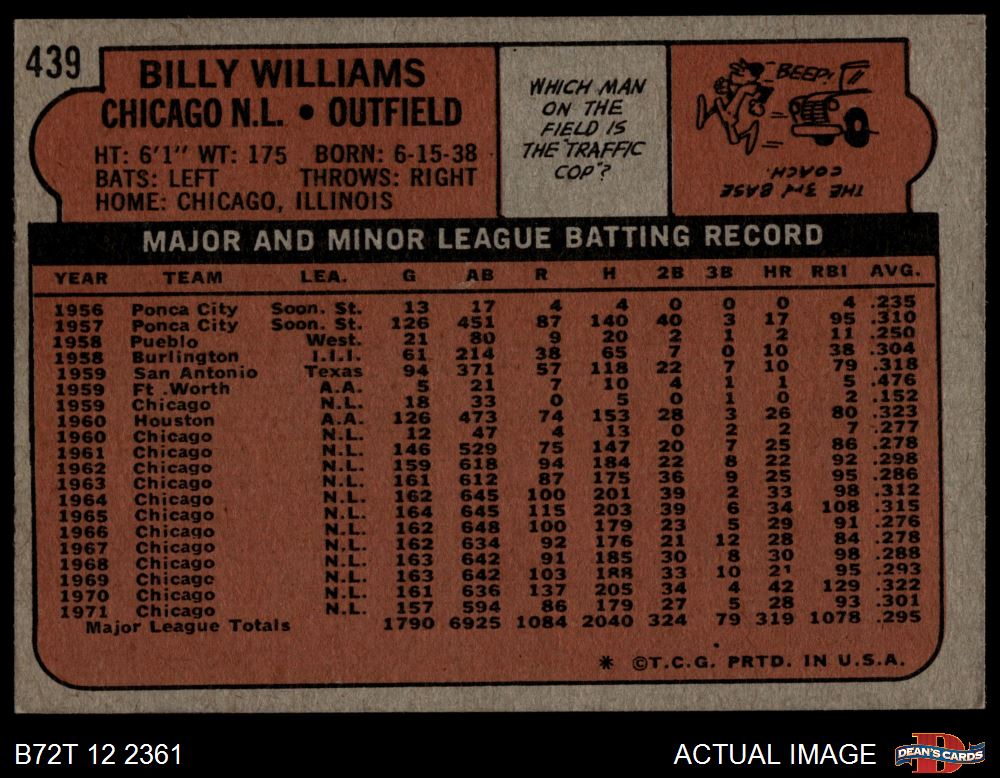 1972 Topps #439 Billy Williams 1.5 - FAIR