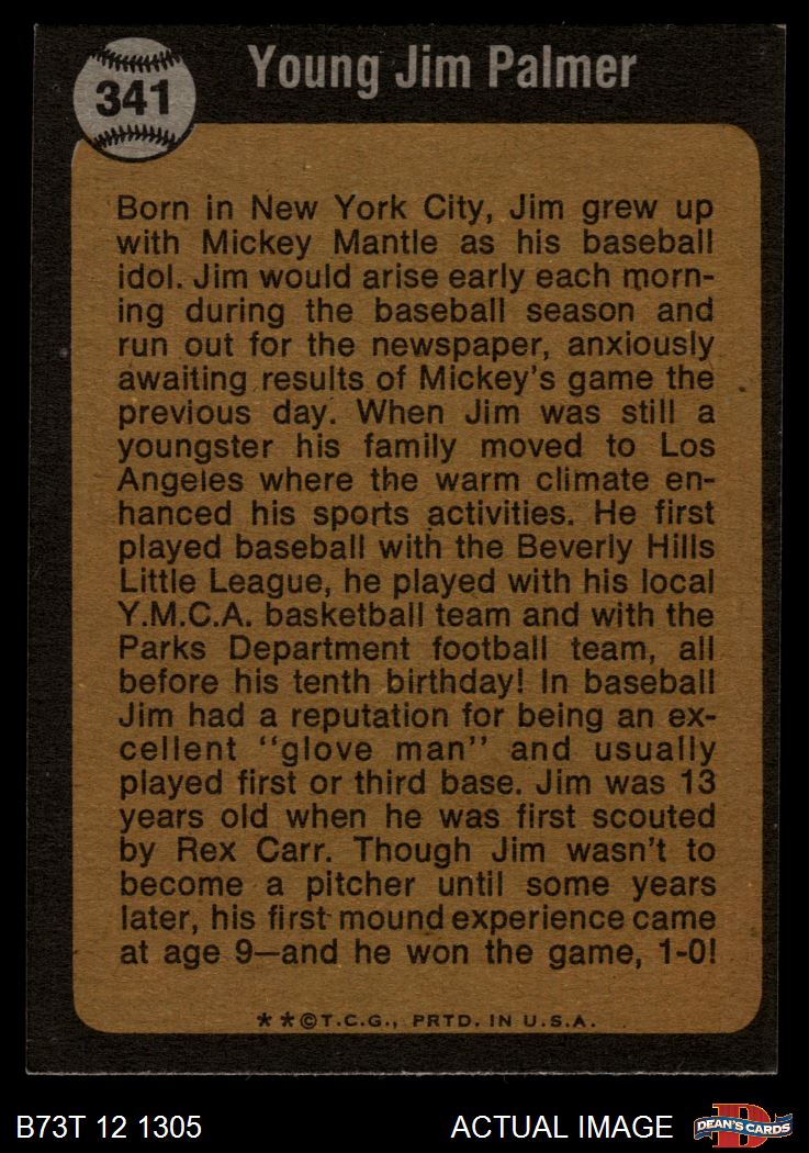 1973 Topps #341 - Jim Palmer Boyhood Photo 8 - NM/MT