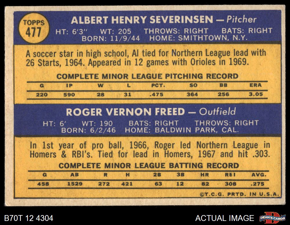 1970 1970 #477 - Al Severinsen / Roger Freed Orioles Rookies 5 - EX