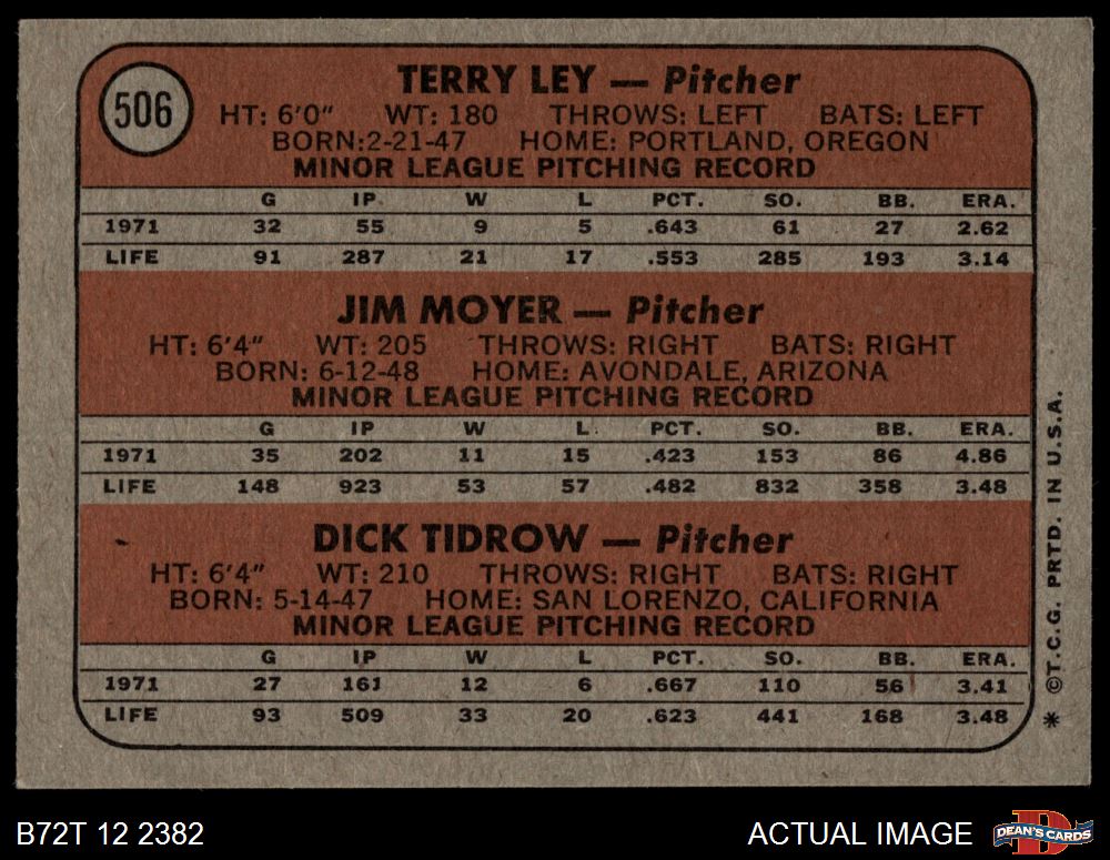 1972 Topps #506 - Dick Tidrow / Terry Ley / Jim Moyer Indians Rookies 5 - EX