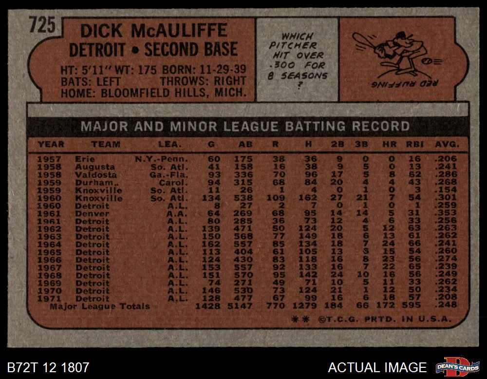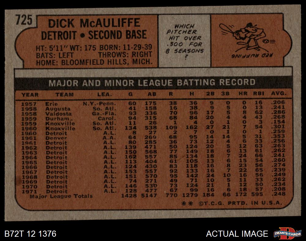 1972 Topps #725 Dick McAuliffe 5 - EX
