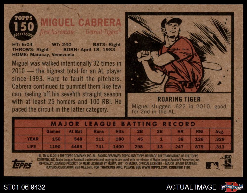 2011 Topps Heritage #150 Miguel Cabrera 8 - NM/MT