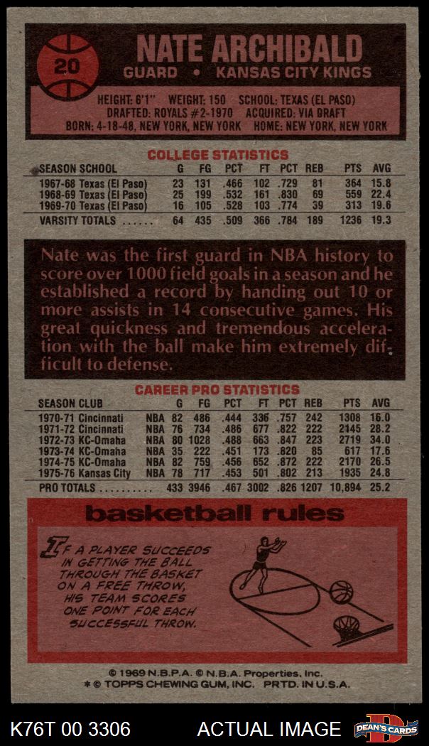 1976 Topps #20 Nate Archibald 8 - NM/MT