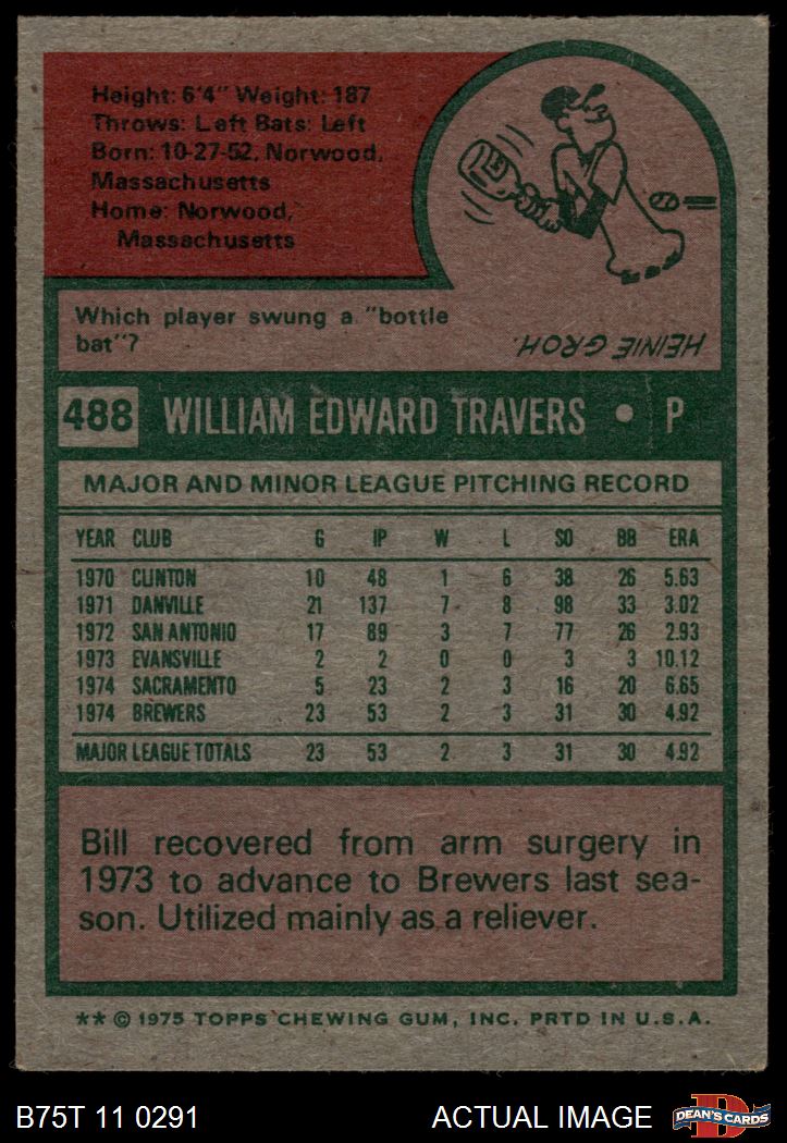 1975 Topps #488 Bill Travers 5 - EX
