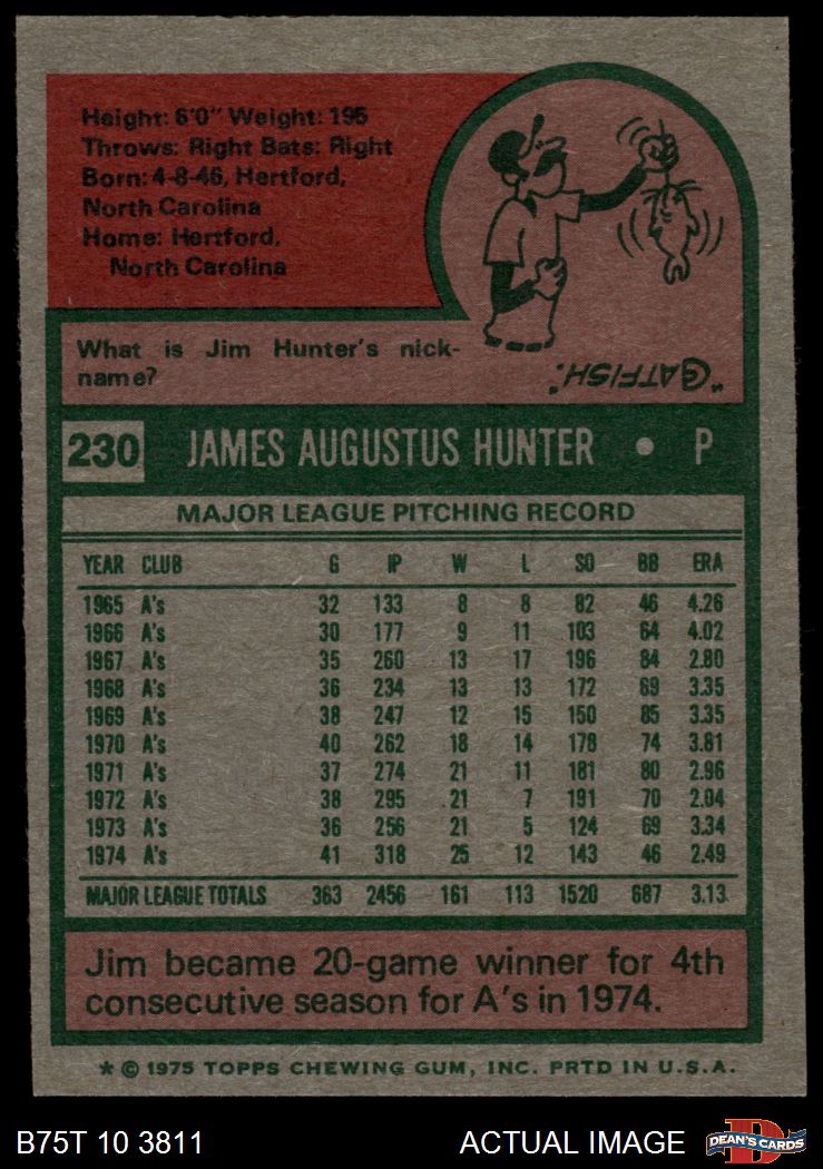 1975 Topps #230 Catfish Hunter