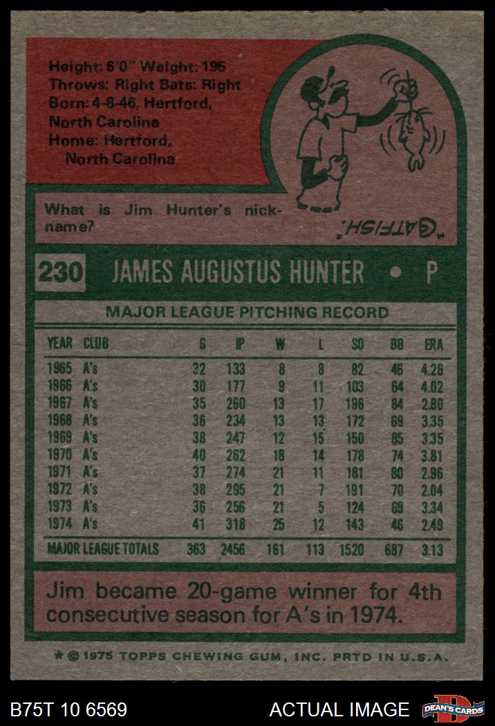 1975 Topps #230 Catfish Hunter 7 - NM