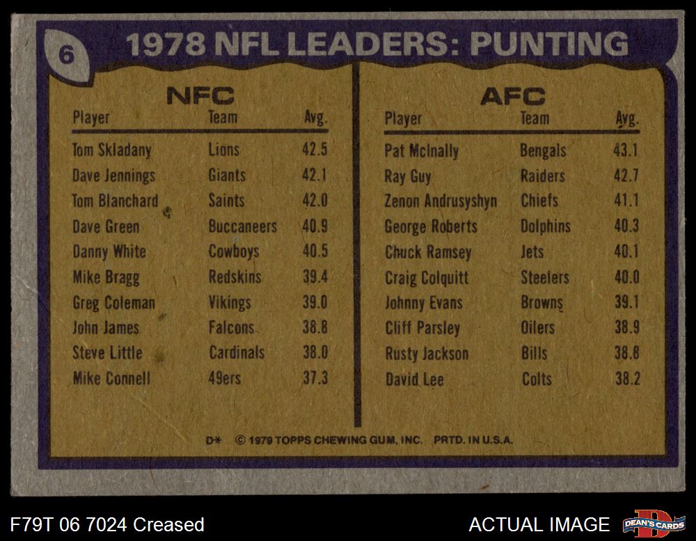 1979 Topps #6 Punting Leaders